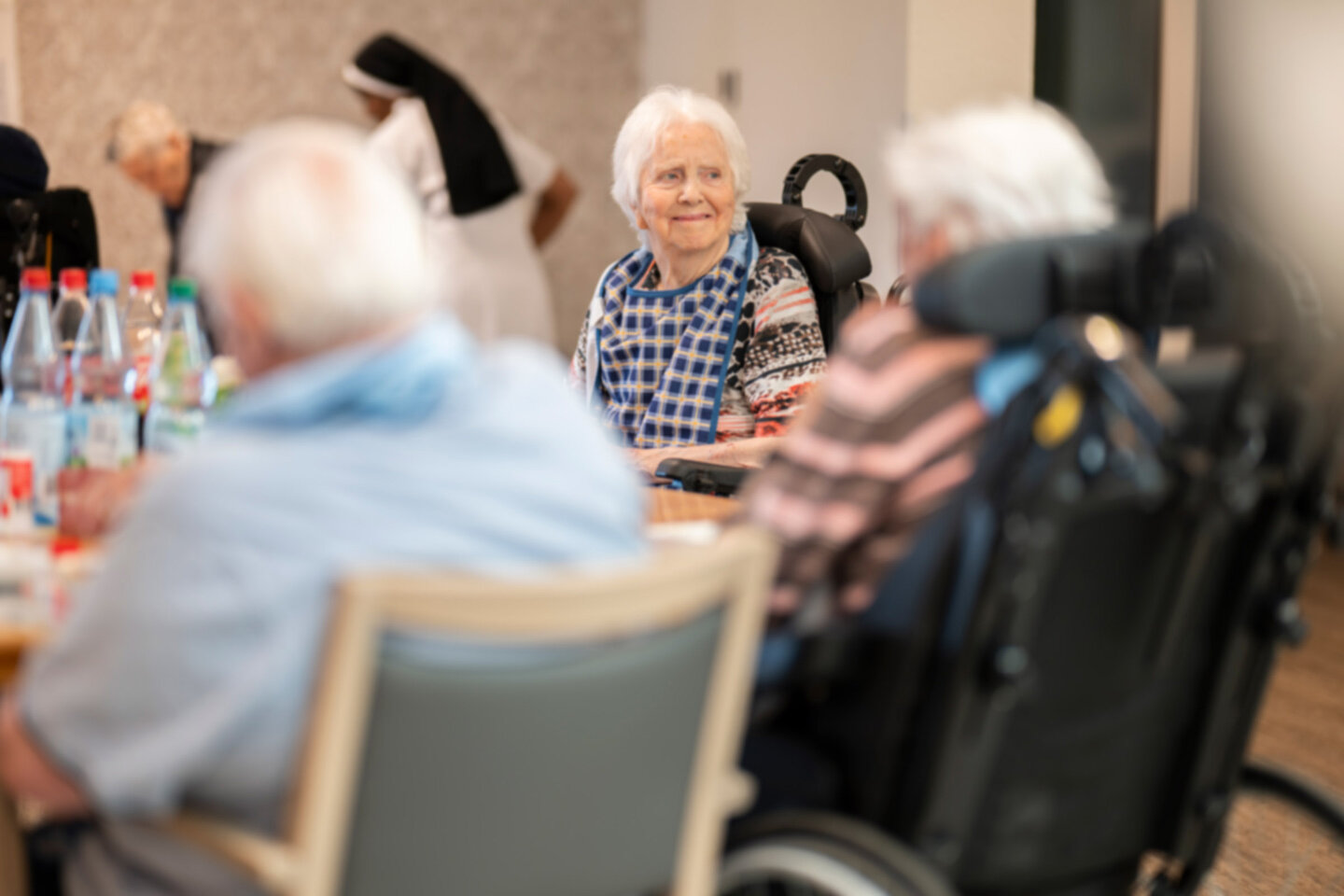 Unsere Bewohnerzimmer sind mit einem elektronischen Pflegebett, einem Nachtschrank sowie einem Kleiderschrank und Sitzmöglichkeiten ausgestattet. Jedes Zimmer verfügt über ein Badezimmer mit ebenerdiger Dusche. Unser Pflege- und Betreuungsteam begleitet unsere Bewohnerinnen und Bewohner mit Vertrauen, Respekt und Fürsorge. Wir unterstützen dort, wo Hilfe benötigt wird und fördern gleichzeitig die Selbstständigkeit im Alltag. Dies unterstützen wir mit vielen tollen Leistungen wie zum Beispiel mit unserem Angebot der BringLiesel oder dem Einkaufswagen.